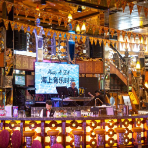 5月27日,在国际邮轮“爱达·地中海”号上,工作人员为游客演出。