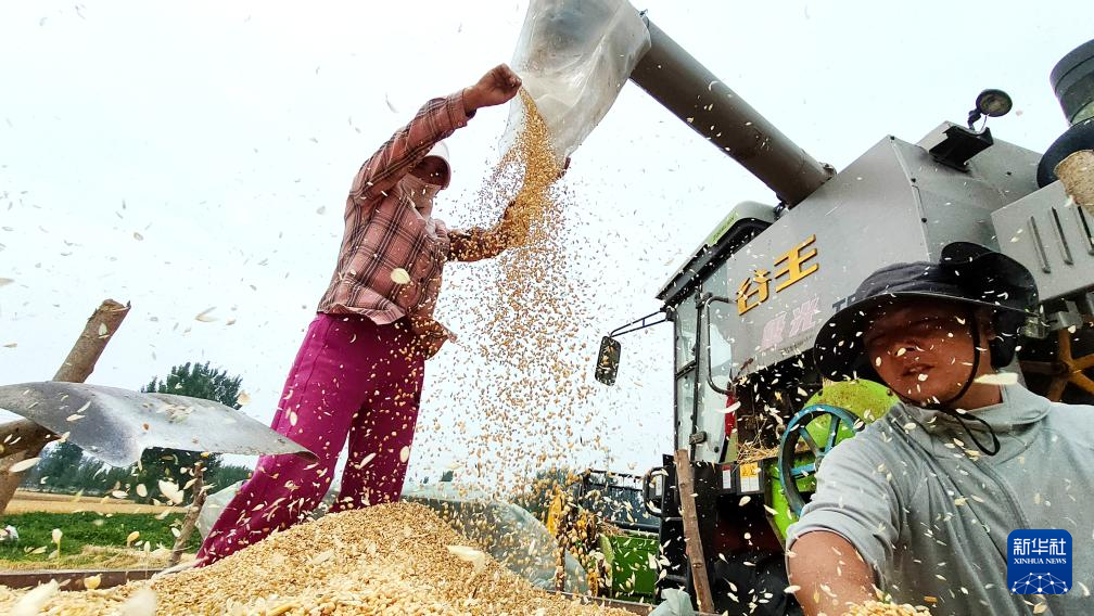5月27日,河南省开封市鼓楼区仙人庄街道后刘村农民在田间收获小麦。