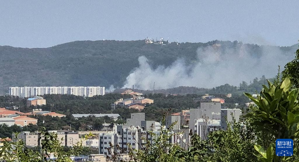 5月29日,在韩国浦项,韩国海军巡逻机坠落地点冒出浓烟。