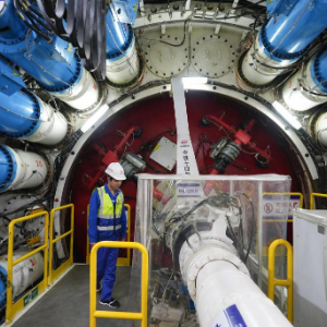 当日,在中铁十四局承建的甬舟铁路金塘海底隧道宁波侧地下64米深处,“甬舟号”盾构机成功穿越海堤,由陆域段进入海域段掘进施工,标志着隧道建设全面进入“穿海之旅”。