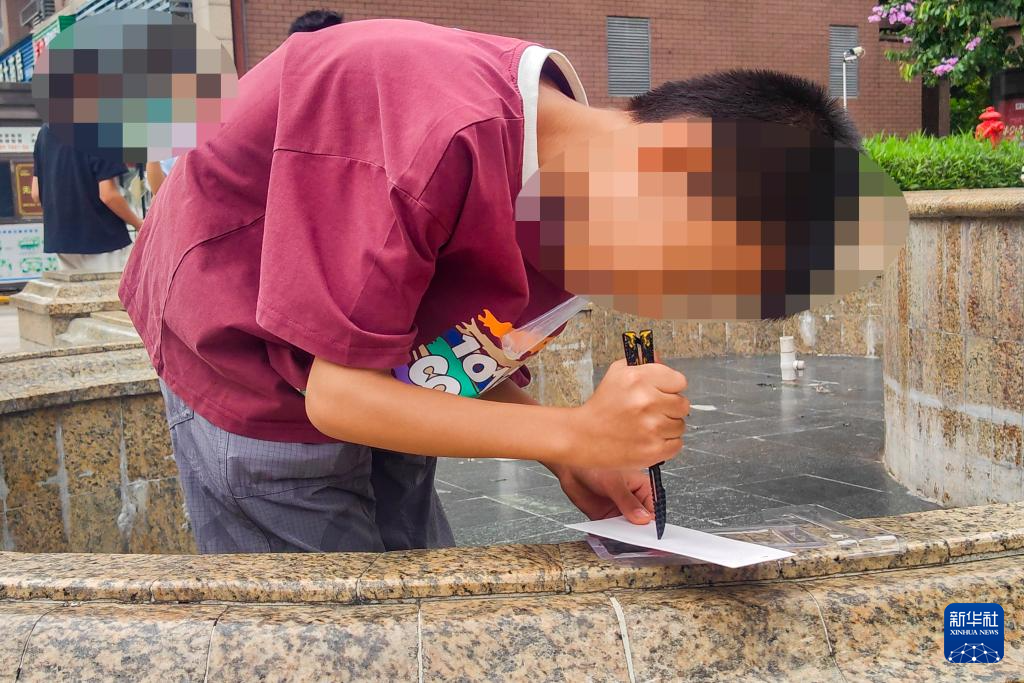 5月27日,在广西南宁市一小区外,学生们放学后聚在一起玩“捏捏乐”玩具。新华社记者 曹祎铭 摄pagebreak