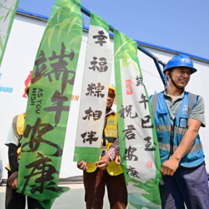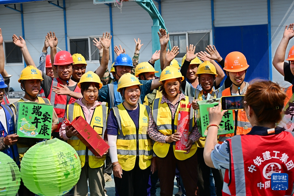 当日,中铁建工青岛火车北站地下空间项目部组织工人开展“乡音话端午 幸福粽相伴”班组主题日活动。工人们通过分享各自家乡端午节习俗,参加投壶、射五毒、吃粽子比赛等趣味活动,迎接端午节的到来。