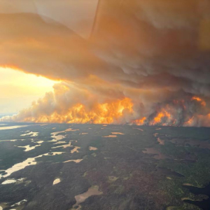 这是5月27日在加拿大马尼托巴省弗林弗伦附近航拍的野火现场。