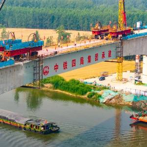 5月29日,由中铁四局承建的阜淮铁路跨涡河特大桥最后一节重880吨的钢箱梁成功完成吊装,标志着阜淮铁路跨涡河特大桥合龙。阜淮铁路位于安徽省北部,途经阜阳、亳州、宿州、淮北,正线全长约142.5公里,设计时速350公里。