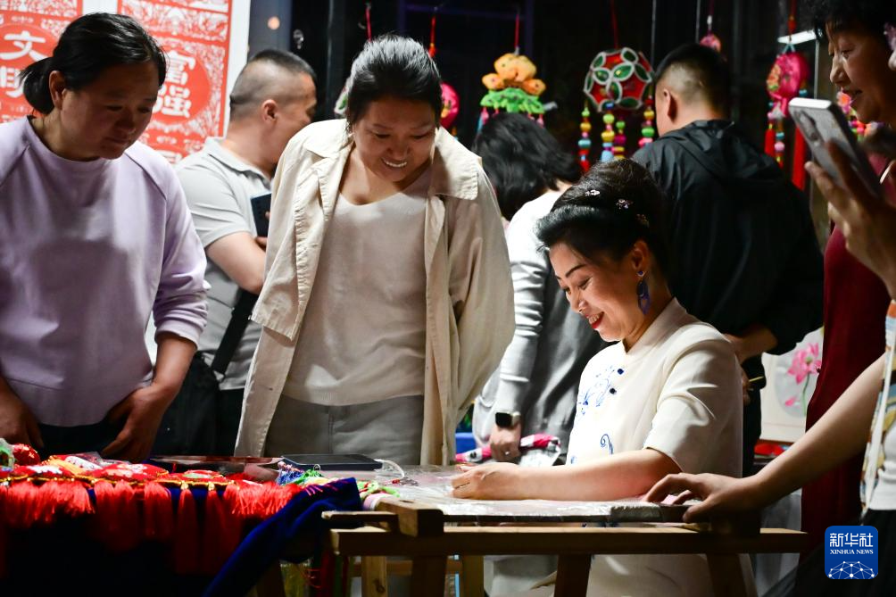 5月28日,在“西海2261·河湟文化大集”,市民观看非遗传承人展示青绣技艺。