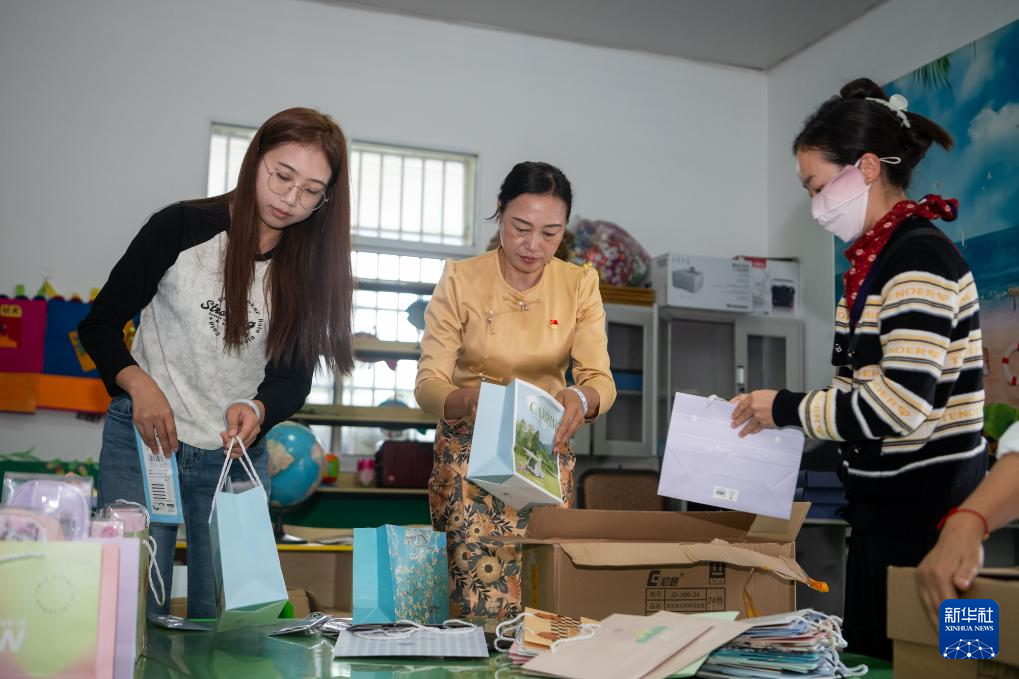 5月29日,板小莲(中)积极争取陇川县民政部门支持,为即将迎来“六一”国际儿童节的孩子们筹备学习用品作为节日礼物。