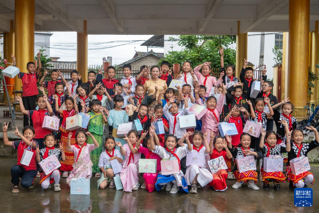 5月29日,板小莲在安全课后将儿童节礼物分发到孩子们手中。