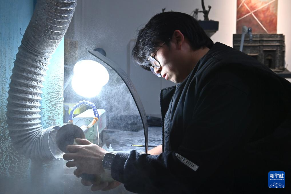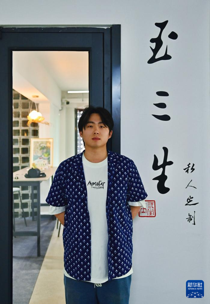 “00后”唐校是辽宁鞍山人。他自幼在身为玉石雕刻大师的父亲唐帅的工作室里成长,浸润于刻玉声中。2023年从中国美术学院毕业后,他回到家乡鞍山市岫岩满族自治县,创建“玉三生”工作室。