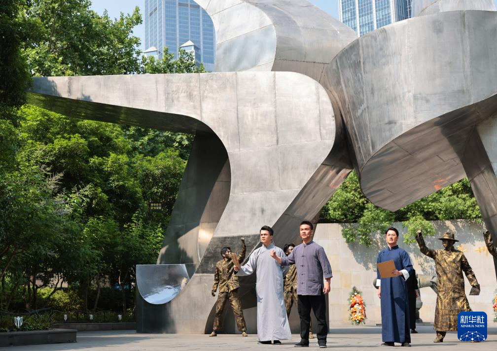 当日,上海市总工会纪念五卅运动100周年主题活动在位于上海人民广场的五卅运动纪念碑广场举行。