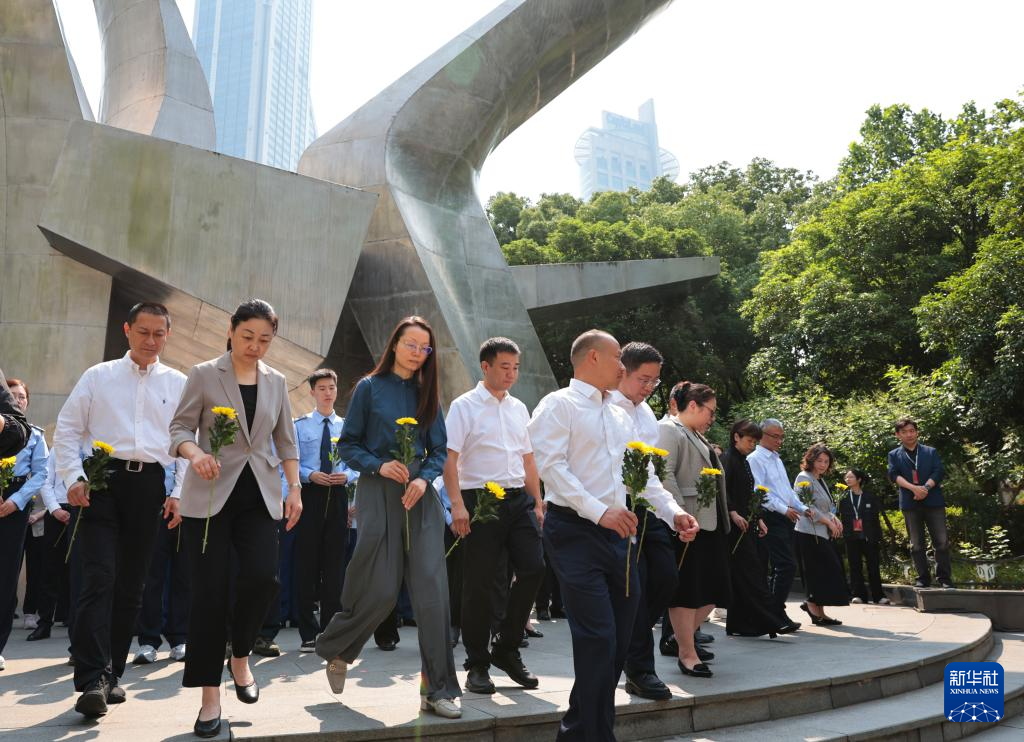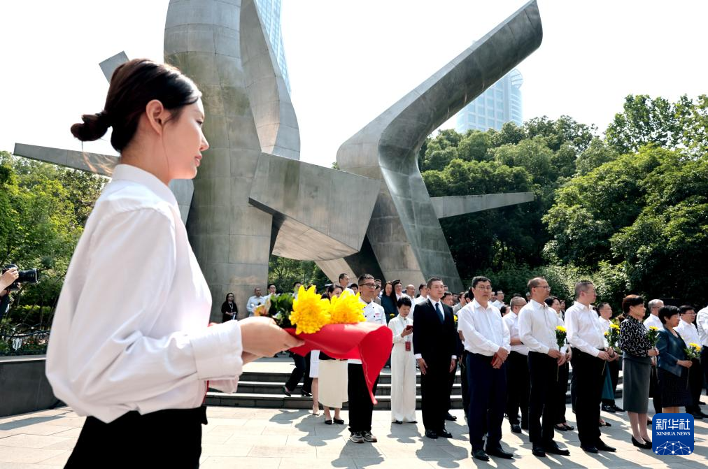 5月30日,劳模工匠和职工代表向五卅运动纪念碑献花。