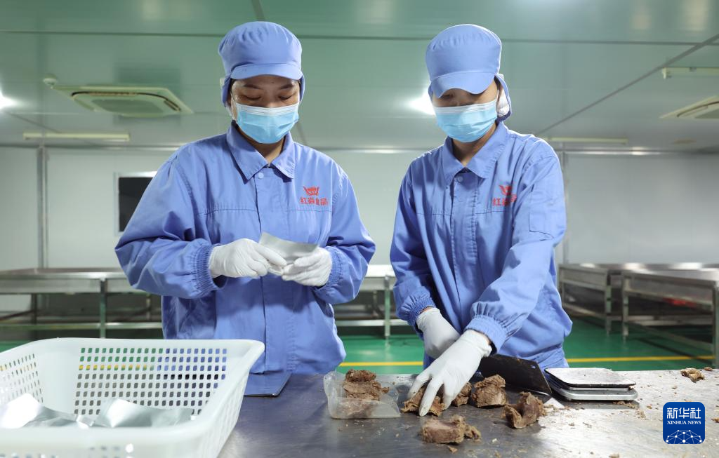 在位于海南洋浦经济开发区保税港区的红焱食品有限公司,工作人员分装产品(5月27日摄)。
