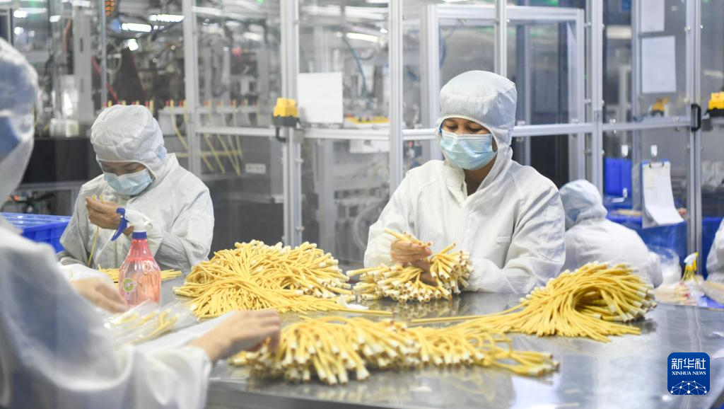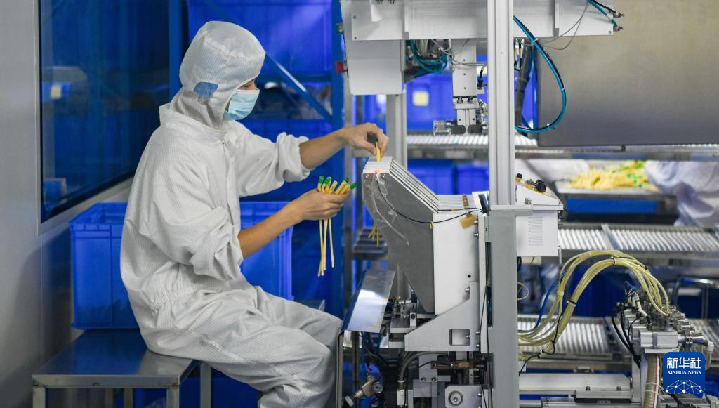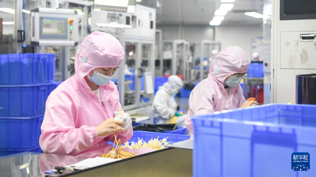 工作人员在海南维力医疗科技开发有限公司生产车间里工作(5月21日摄)。