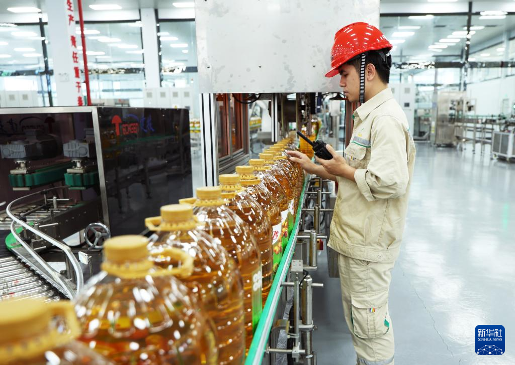 在位于海南洋浦经济开发区保税港区的澳斯卡国际粮油有限公司,工作人员在生产线上工作。该公司是海南首批加工增值免关税试点企业(5月27日摄)。