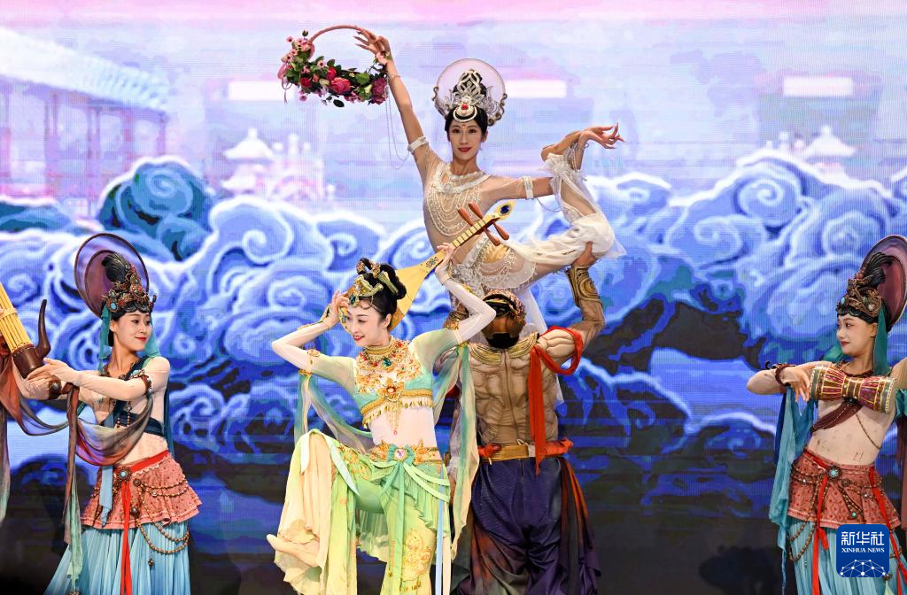 5月30日,在第四届文明交流互鉴对话会的开幕式上,演员进行敦煌石窟文化艺术主题表演。