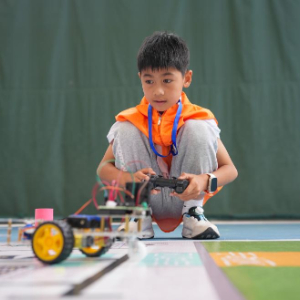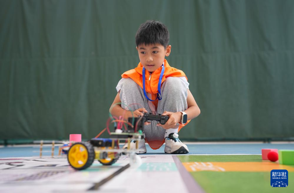 5月31日,一名参赛选手在全国青少年科技教育成果展示大赛云南省区域赛上操作机器人进行比赛。