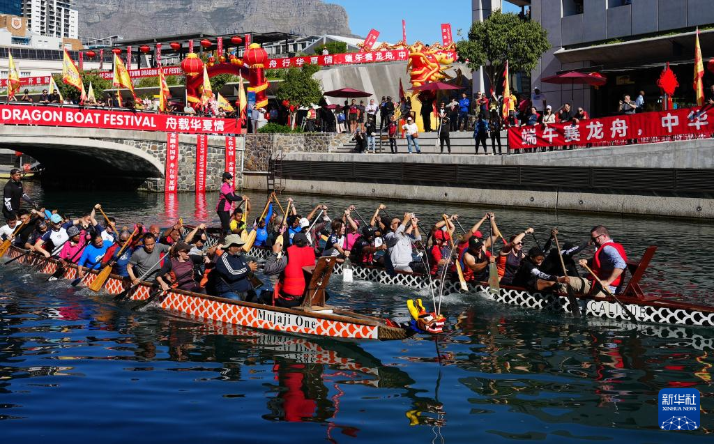 5月24日,人们在南非开普敦参加龙舟比赛。