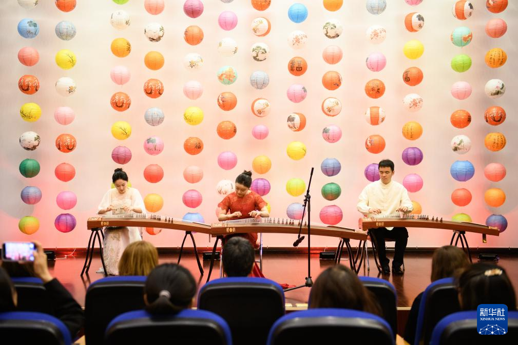 5月30日,在罗马尼亚首都布加勒斯特,中国古筝演奏家与罗马尼亚音乐家在“对话·知音——用音乐与世界对话”中国古筝音乐会上共同演奏《春江花月夜》。