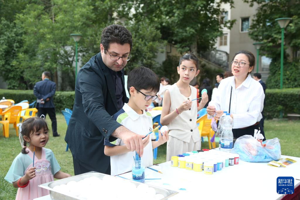 5月27日,在伊朗首都德黑兰,人们参加中国驻伊朗大使馆举行的“香囊飘香 端午安康”节日庆祝活动。