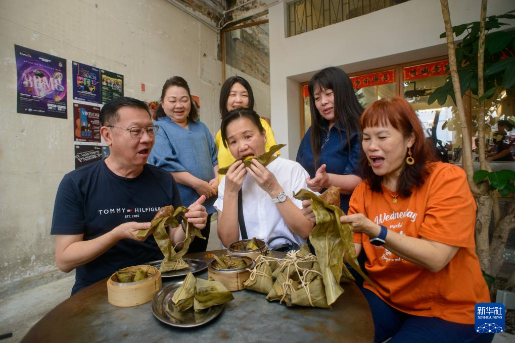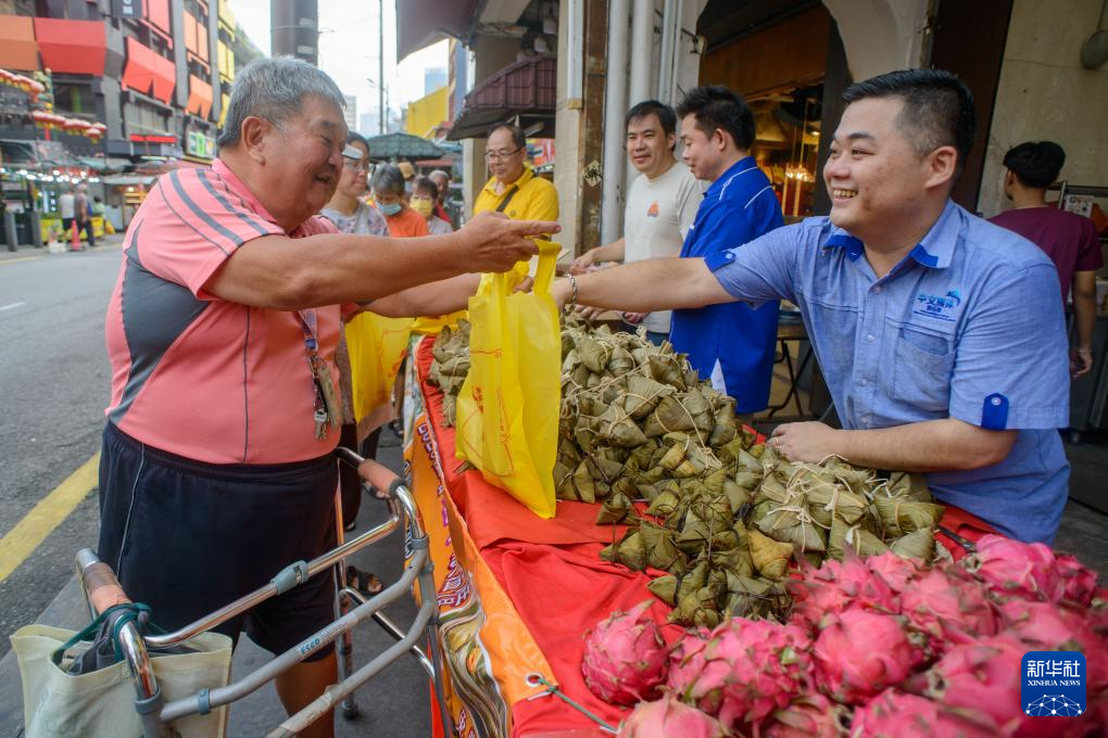 5月31日,在马来西亚首都吉隆坡,人们在“2025温馨端午献温情”活动上品尝免费派发的粽子。