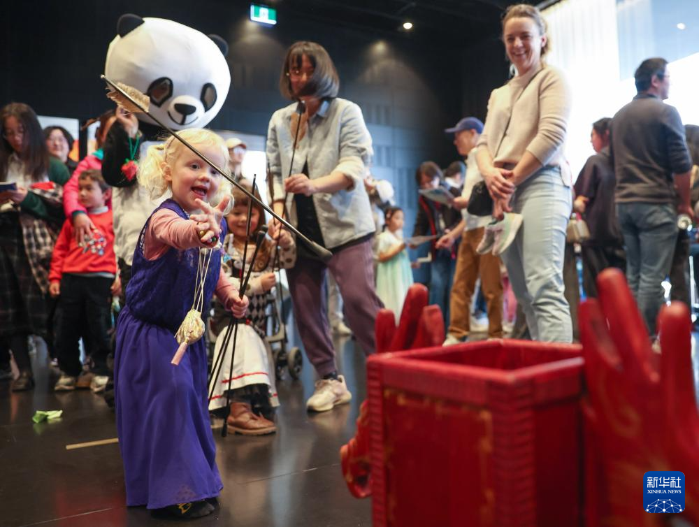 5月30日,在新西兰克赖斯特彻奇举办的端午节文化活动中,小朋友体验投壶游戏。