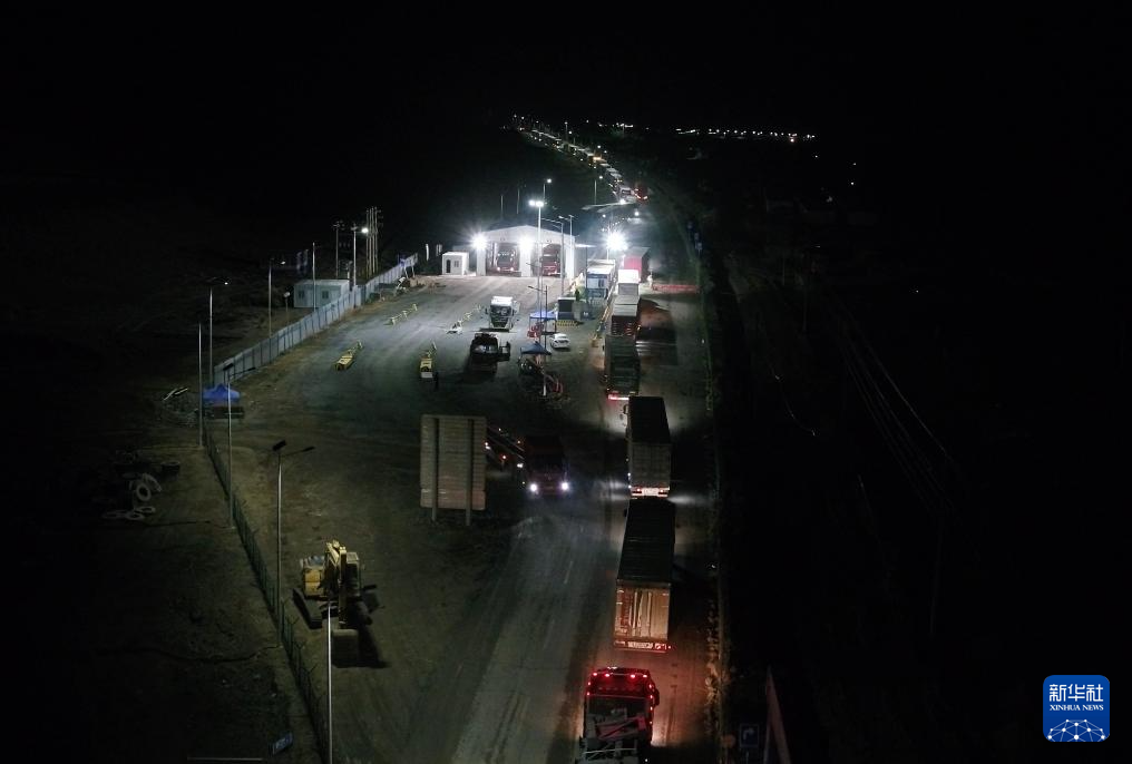 6月2日凌晨,车辆在伊尔克什坦口岸国门前接受检查。
