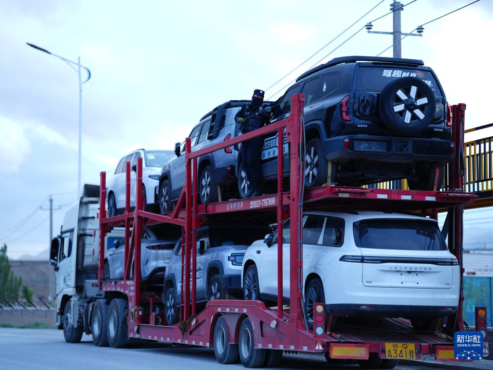 6月1日,在新疆伊尔克什坦口岸,边检站执勤民警在检查出口商品车。