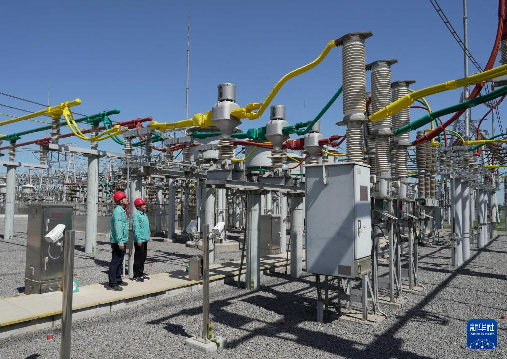 6月4日,国网河北省电力有限公司的工人在廉州500千伏超高压变电站内巡检。