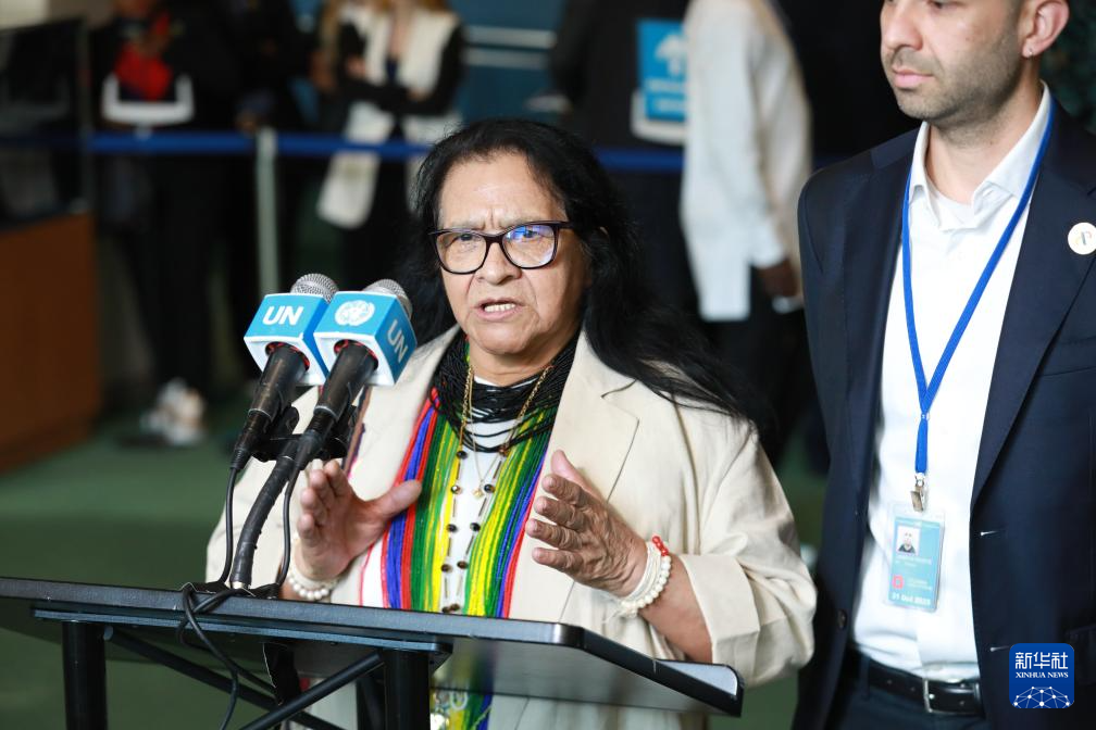 6月3日,在位于纽约的联合国总部,哥伦比亚常驻联合国代表托雷斯在哥伦比亚当选联合国安理会非常任理事国后讲话。