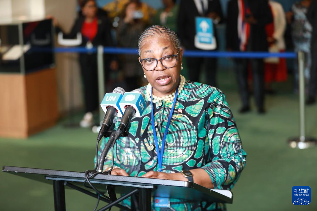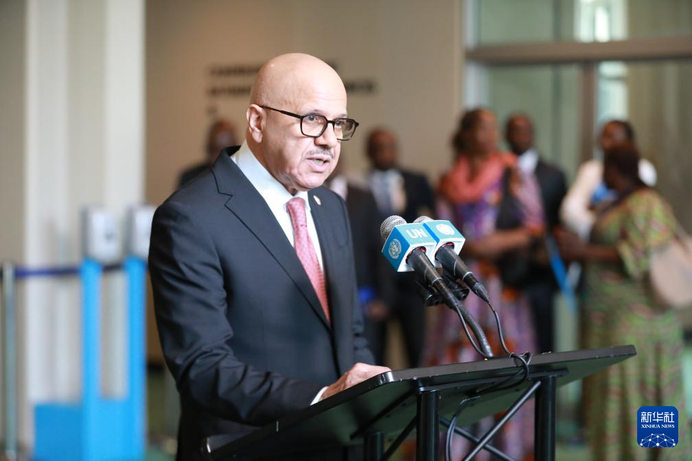 6月3日,在位于纽约的联合国总部,利比里亚副外长格雷在利比里亚当选联合国安理会非常任理事国后讲话。