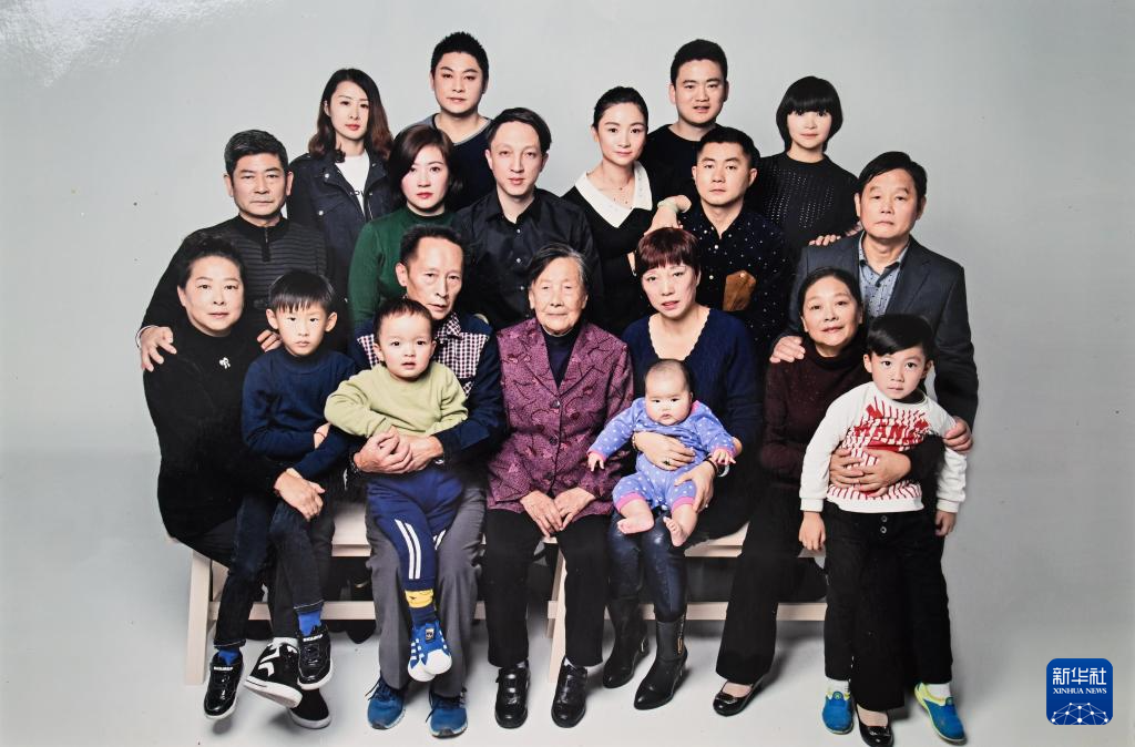2016年夏淑琴一家拍摄的全家福(翻拍照片)。新华社发pagebreak