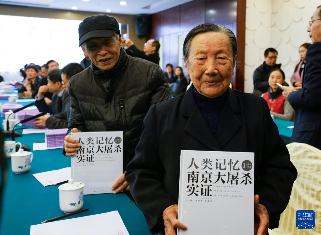 2016年12月12日,在南京举行的“以史为鉴、警示未来”2016年系列图书首发式上,夏淑琴(前)展示获赠图书。新华社记者 季春鹏 摄pagebreak