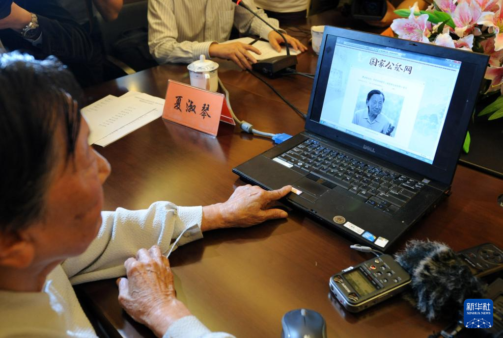 2014年9月17日,夏淑琴点开自己口述证言公布网页。从这天起,侵华日军南京大屠杀遇难同胞纪念馆连续100天每天在国家公祭网和纪念馆官方网站上公布一位南京大屠杀幸存者口述证言。新华社记者 孙参 摄pagebreak