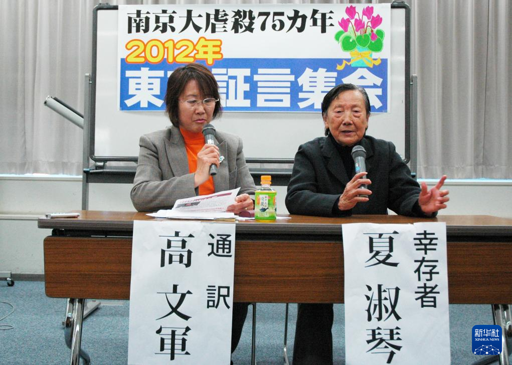 2012年12月16日,夏淑琴(右)在日本东京举行的证言集会上发言。新华社发pagebreak