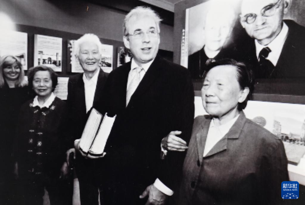 2009年5月1日,夏淑琴(右一)与约翰·拉贝的孙子托马斯·拉贝(右二)在位于南京的拉贝故居留影(翻拍照片)。德国商人约翰·拉贝写下《拉贝日记》记录南京大屠杀历史,夏淑琴的遭遇被记录在其中。新华社记者 季春鹏 摄pagebreak