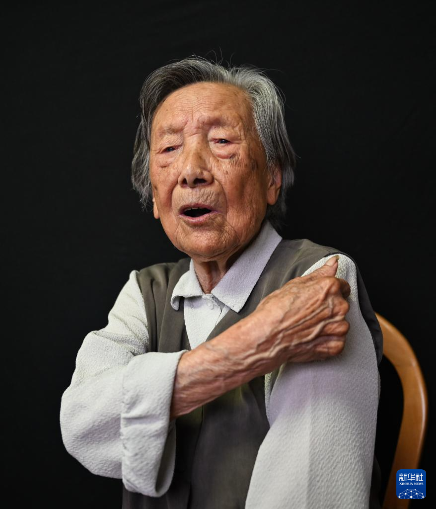 2025年5月21日,夏淑琴讲述自己被侵华日军刺中三刀的经历。新华社记者 季春鹏 摄pagebreak