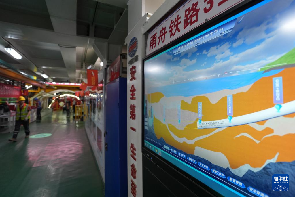 6月5日,甬舟铁路金塘海底隧道数字孪生平台显示盾构机掘进里程突破3135米。