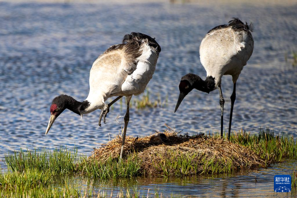 近年来,西藏持续加大黑颈鹤栖息地保护力度,黑颈鹤生存环境显著改善。申扎县星罗棋布的湿地,吸引了大批黑颈鹤来此孵蛋育雏。
