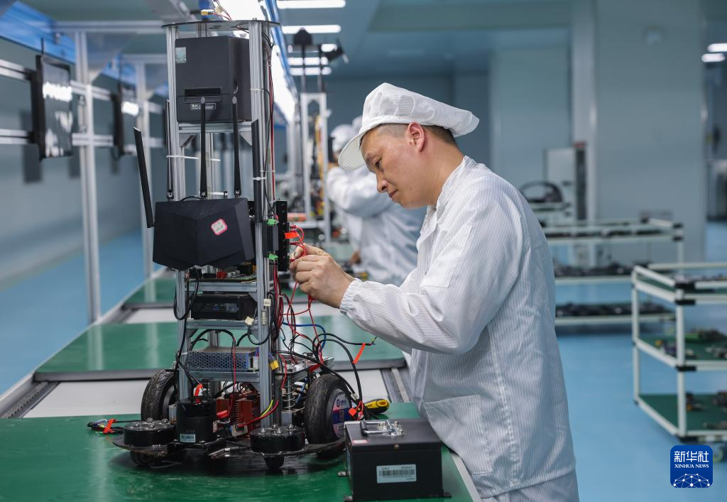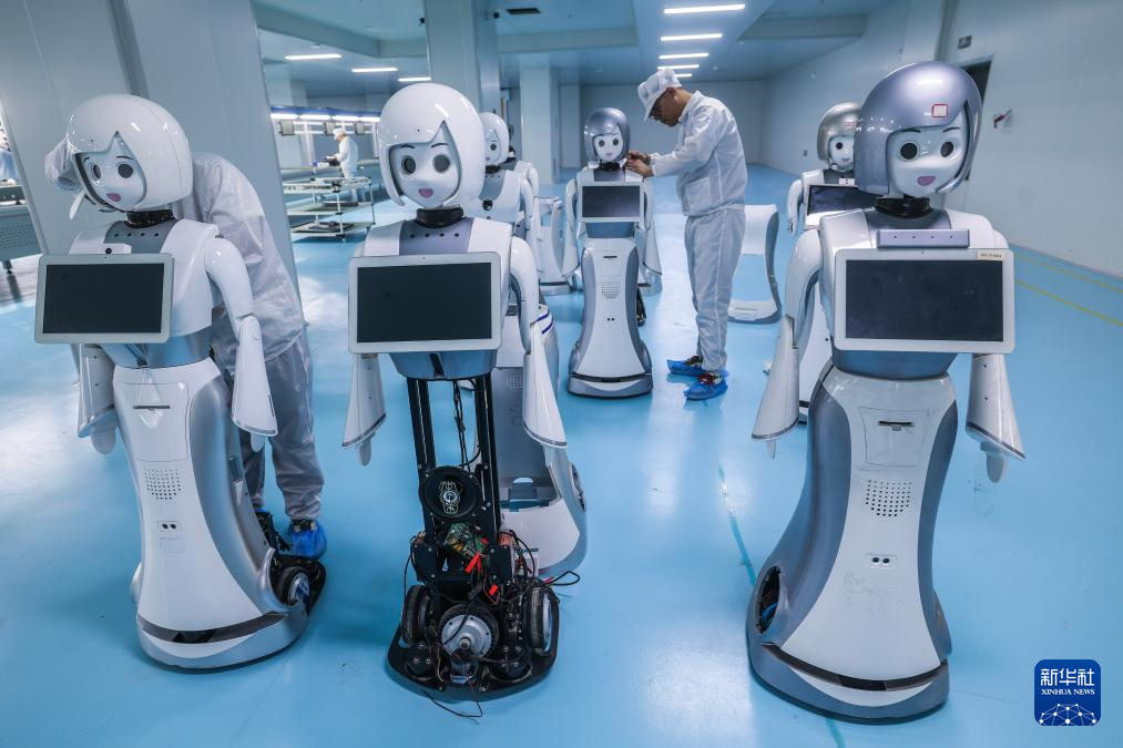 6月5日,在位于金华市金东区金义新区的浙江恒东智能科技有限公司机器人智造中心,工作人员在装配服务机器人。该公司立足“AI+产业互联网”战略,深度赋能传统制造业,其研发的服务引导、安防巡逻、农业养殖等类型机器人已在多领域实践应用。