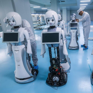 6月5日在位于金华市金东区金义新区的浙江恒东智能科技有限公司展厅拍摄的应用于不同场景的机器人。该公司立足“AI+产业互联网”战略,深度赋能传统制造业,其研发的服务引导、安防巡逻、农业养殖等类型机器人已在多领域实践应用。