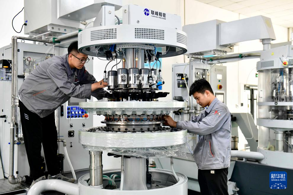 6月6日,在位于嘉祥县的山东联峰精密科技有限公司,工作人员在组装精密机床。