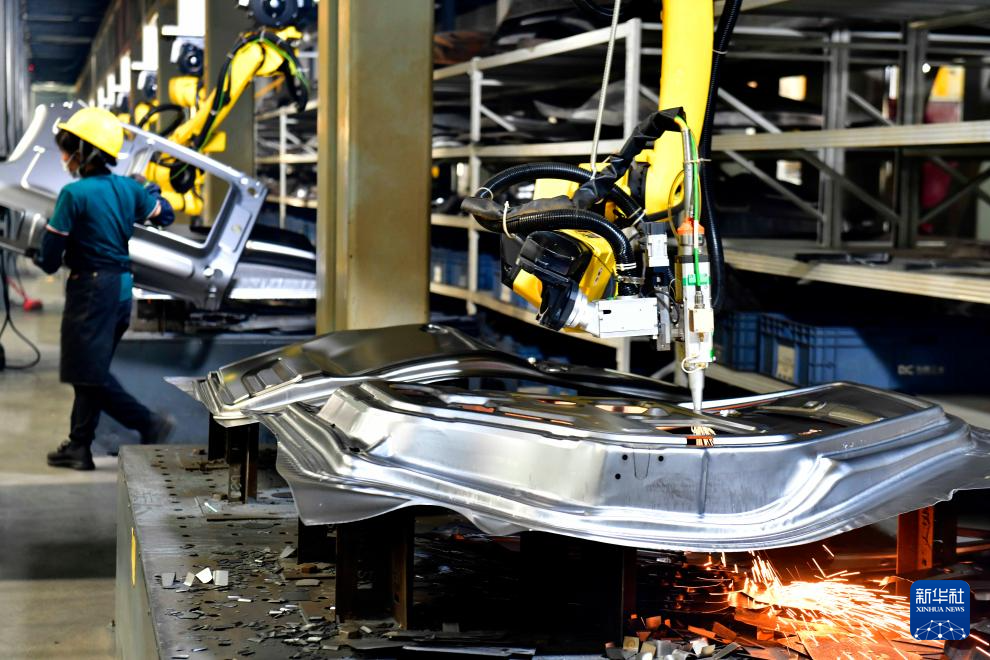 6月6日,在位于嘉祥县的山东东辰工业自动化有限公司,工业机器人在加工汽车零部件。