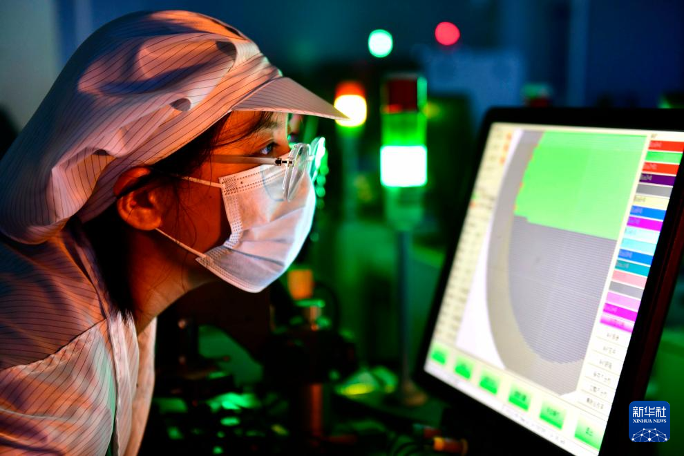 6月6日,在位于嘉祥县的济宁瑞芯半导体有限公司,工作人员在检测产品质量。