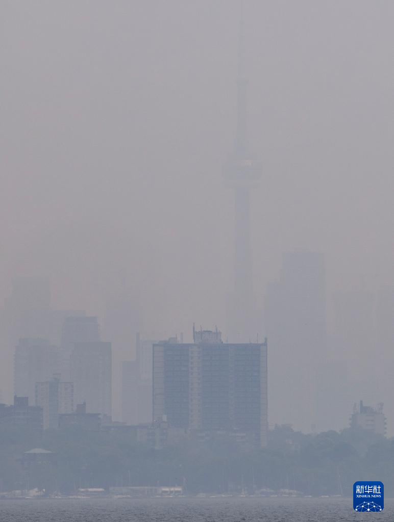6月6日,加拿大多伦多市区笼罩在烟尘中。
