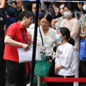 6月7日,在宿州市的一处高考考点外,王子文在妈妈许成香的陪伴下进入考点。