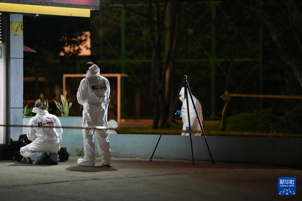 6月7日,在哥伦比亚首都波哥大,司法警察对遇袭现场进行勘察。