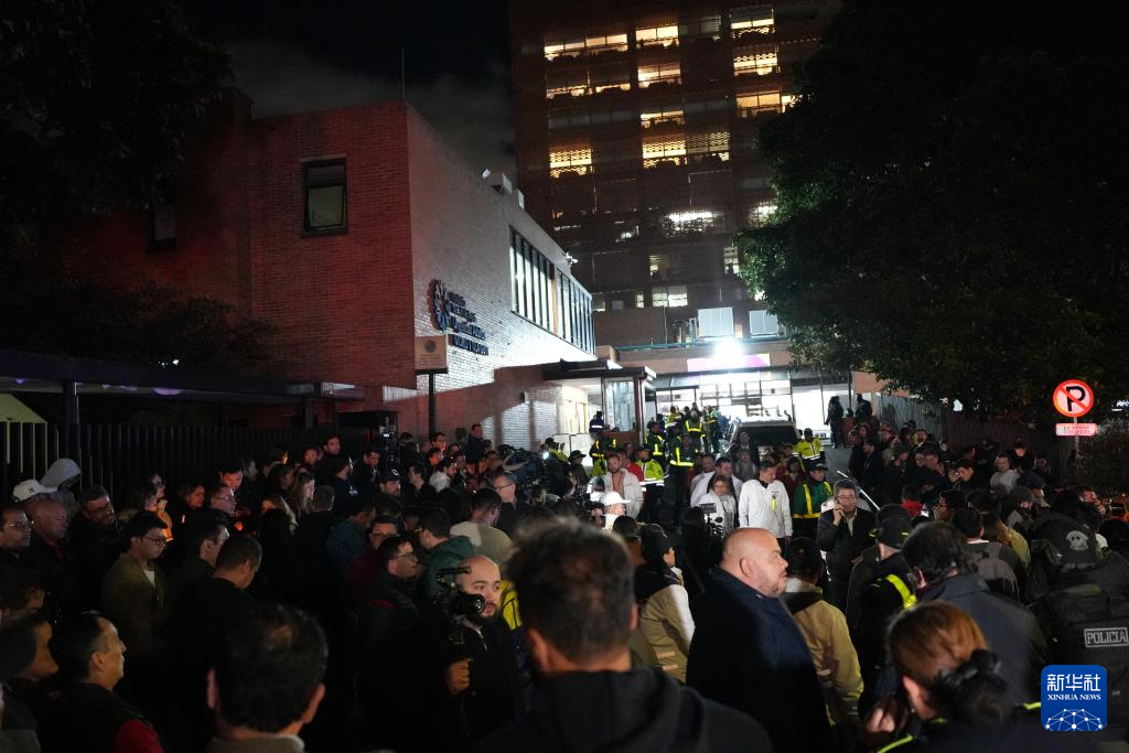 6月7日,在哥伦比亚首都波哥大,人们聚集在哥伦比亚参议员、总统选举参选人米格尔·乌里韦遇袭后接受救治的医院外。