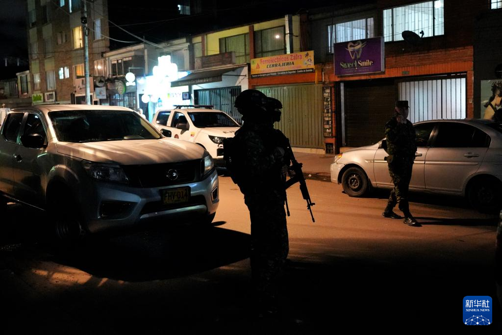 6月7日,在哥伦比亚首都波哥大的遇袭现场,军警在遇袭地点进行巡逻。