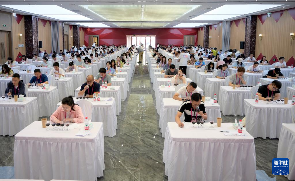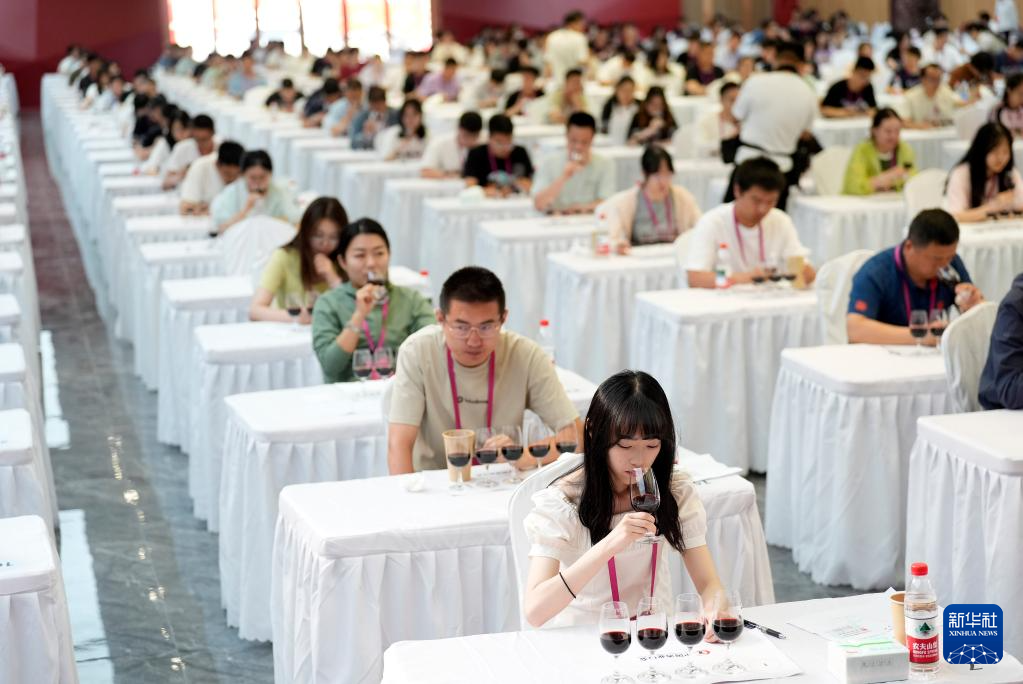全国首届葡萄酒产业“创殊杯”职工职业技能大赛决赛开幕式现场(6月9日摄)。