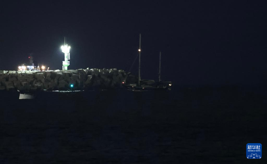 6月9日晚,被以军拦截的人道主义救援船抵达以色列南部阿什杜德港附近海域。