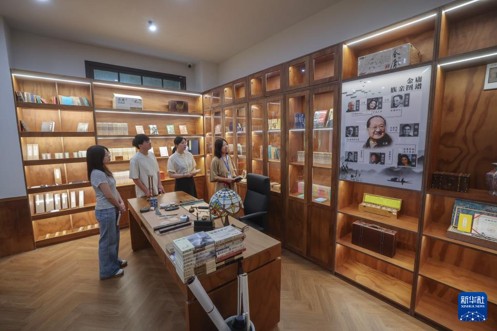 6月10日,游客在嘉兴市南湖区建设街道的子城欢喜书店参观金庸主题书房。